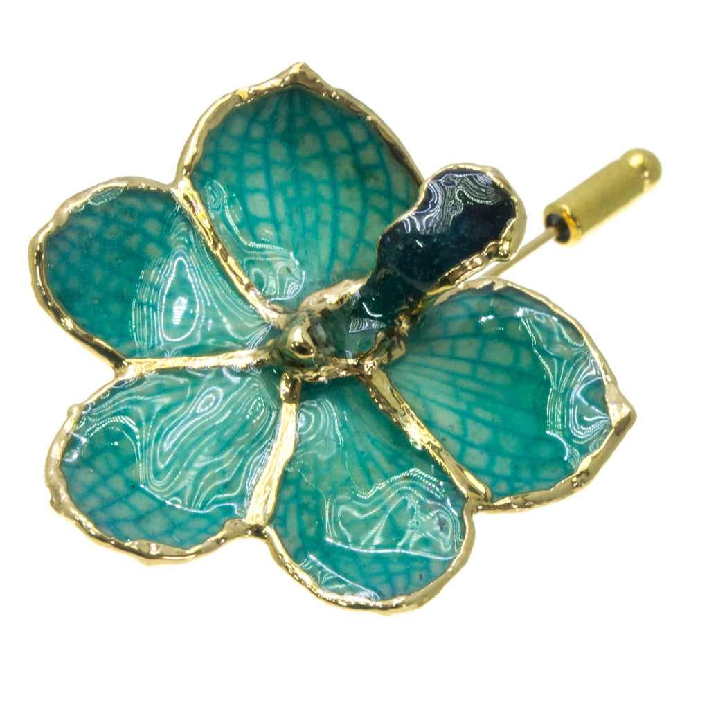 Ascocenda Orchid Stickpin Brooch - Gold/Turquoise