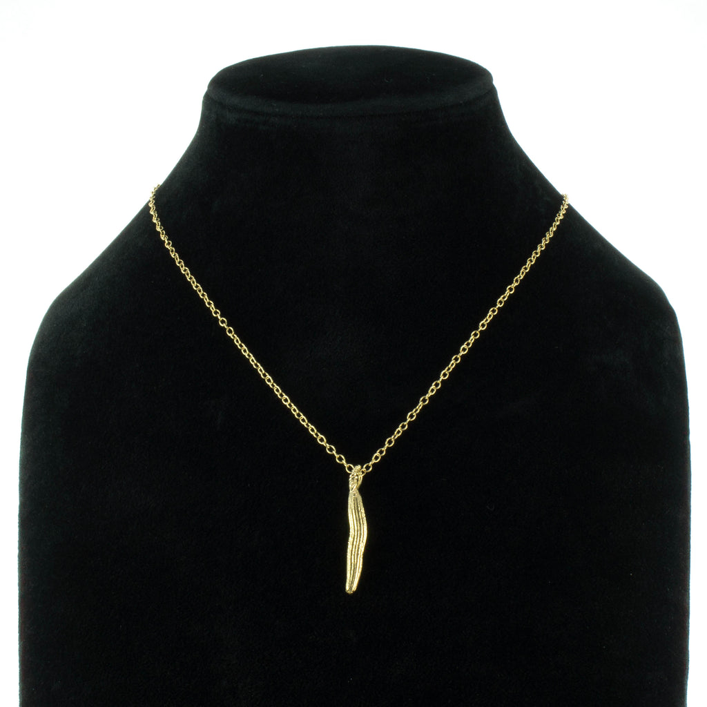 Part of our Miniature Collection, this pretty pendant has been handcrafted from a real molokhia seed pod coated in fine silver and finished in gold. The seed pod is suspended from a slim, 18" gold plated chain.
